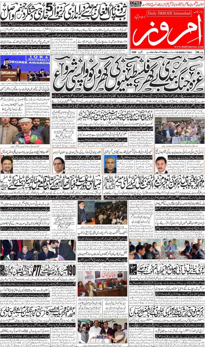 روزنامہ امروز اسلام آباد مورخہ 20 جنوری 2025