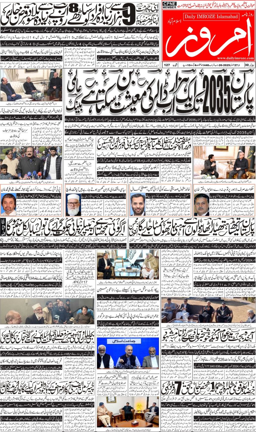 پی ڈی ایف PDF روزنامہ امروز اسلام آباد مورخہ 27 جنوری 2025 Last updated: 2025/01/27 at 5:04 صبح News Desk 1 سال ago Share SHARE روزنامہ امروز اسلام آباد مورخہ 27 جنوری 2025 You Might Also Like روزنامہ امروز اسلام آباد مورخہ19 جولائی 2025 روزنامہ امروز اسلام آباد مورخہ18 جولائی 2025 روزنامہ امروز اسلام آباد مورخہ03 جولائی 2025 روزنامہ امروز اسلام آباد مورخہ02 جولائی 2025 روزنامہ امروز اسلام آباد مورخہ01 جولائی 2025 TAGGED: روزنامہ امروز اسلام آباد مورخہ 27 جنوری 2025 News Desk جنوری 27, 2025 جنوری 27, 2025 Share This Article Facebook Twitter Email Print Previous Article روزنامہ امروز اسلام آباد مورخہ 25 جنوری 2025 Next Article روزنامہ امروز اسلام آباد مورخہ 28 جنوری 2025 Leave a comment جواب دیں جواب منسوخ کریںآپ کا ای میل ایڈریس شائع نہیں کیا جائے گا۔ ضروری خانوں کو * سے نشان زد کیا گیا ہےتبصرہ * نام * ای میل * ویب سائٹ اس براؤزر میں میرا نام، ای میل، اور ویب سائٹ محفوظ رکھیں اگلی بار جب میں تبصرہ کرنے کےلیے۔ - اشتہارات- !ہمیں فالو کریںہمیں سوشل میڈیا پر تلاش کریں۔ Facebook Like Twitter Follow Youtube Subscribe Telegram Follow - اشتہارات- تلاشتلاشRecent Postsپاکستان اٹامک انرجی کمیشن نے عالمی سطح پر اہم سنگِ میل عبور کر لیا فوجی وردی میں ملبوس فیلڈ مارشل کا تہران آمد پر گرمجوشی سے استقبال نوبل پرائز ـ اعتراف یا خوشامد؟ فیلڈ مارشل کی تکریم میں حدِ فاصل کا تعین مشرقِ وسطیٰ کی موجودہ صورتِ حال پر روسی وزارتِ خارجہ کا بیان شہباز۔منیر: انسانیت کو بچانے والے ہیرو Recent Commentsدکھانے کے لئے کوئی تبصرہ نہیں۔
