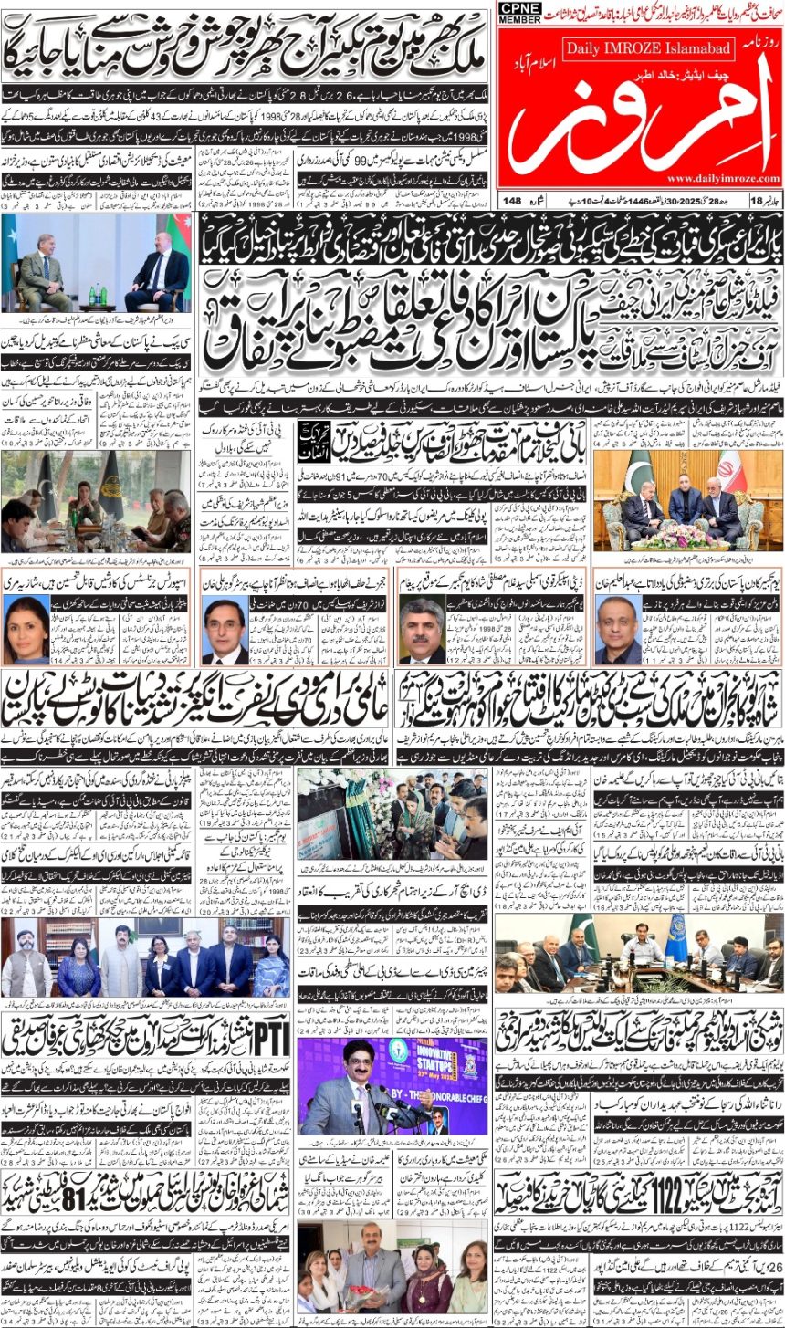 پی ڈی ایف PDF روزنامہ امروز اسلام آباد مورخہ 28 مئی 2025 Last updated: 2025/05/28 at 4:10 صبح News Desk 11 مہینے ago Share SHARE روزنامہ امروز اسلام آباد مورخہ 28 مئی 2025 You Might Also Like روزنامہ امروز اسلام آباد مورخہ19 جولائی 2025 روزنامہ امروز اسلام آباد مورخہ18 جولائی 2025 روزنامہ امروز اسلام آباد مورخہ03 جولائی 2025 روزنامہ امروز اسلام آباد مورخہ02 جولائی 2025 روزنامہ امروز اسلام آباد مورخہ01 جولائی 2025 TAGGED: روزنامہ امروز اسلام آباد مورخہ 28 مئی 2025 News Desk مئی 28, 2025 مئی 28, 2025 Share This Article Facebook Twitter Email Print Previous Article روزنامہ امروز اسلام آباد مورخہ 27 مئی 2025 Next Article روزنامہ امروز اسلام آباد مورخہ 29 مئی 2025 Leave a comment جواب دیں جواب منسوخ کریںآپ کا ای میل ایڈریس شائع نہیں کیا جائے گا۔ ضروری خانوں کو * سے نشان زد کیا گیا ہےتبصرہ * نام * ای میل * ویب سائٹ اس براؤزر میں میرا نام، ای میل، اور ویب سائٹ محفوظ رکھیں اگلی بار جب میں تبصرہ کرنے کےلیے۔ - اشتہارات- !ہمیں فالو کریںہمیں سوشل میڈیا پر تلاش کریں۔ Facebook Like Twitter Follow Youtube Subscribe Telegram Follow - اشتہارات- تلاشتلاشRecent Postsپاکستان اٹامک انرجی کمیشن نے عالمی سطح پر اہم سنگِ میل عبور کر لیا فوجی وردی میں ملبوس فیلڈ مارشل کا تہران آمد پر گرمجوشی سے استقبال نوبل پرائز ـ اعتراف یا خوشامد؟ فیلڈ مارشل کی تکریم میں حدِ فاصل کا تعین مشرقِ وسطیٰ کی موجودہ صورتِ حال پر روسی وزارتِ خارجہ کا بیان شہباز۔منیر: انسانیت کو بچانے والے ہیرو Recent Commentsدکھانے کے لئے کوئی تبصرہ نہیں۔