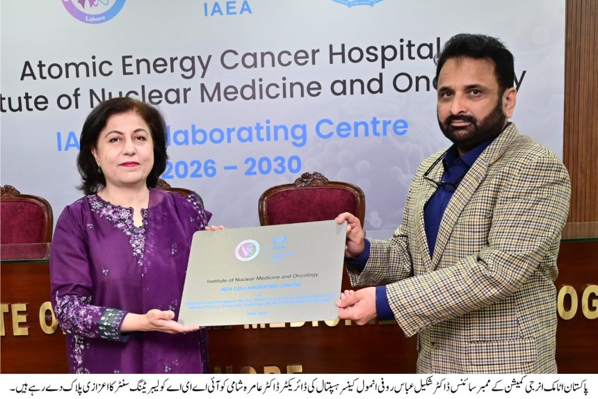 اسلام آباد:پاکستان اٹامک انرجی کمیشن نے بین الااقوامی توانائی ایجنسی کے ساتھ اپنے تعاون میں ایک اہم سنگِ میل عبور کیا ۔ اس سلسلے میں انسٹی ٹیوٹ آف نیوکلیئر میڈیسن اینڈ آنکولوجی (انمول)، اٹامک انرجی کینسر ہسپتال لاہور کو بین الاقوامی ایٹمی توانائی ایجنسی کے علاقائی تعاون کے مرکز قرار دینےکی تختی باضابطہ طور پر پیش کی گئی ۔یہ تقریب ہفتہ کے روز لاہور انمول میں منعقد ہوئی۔